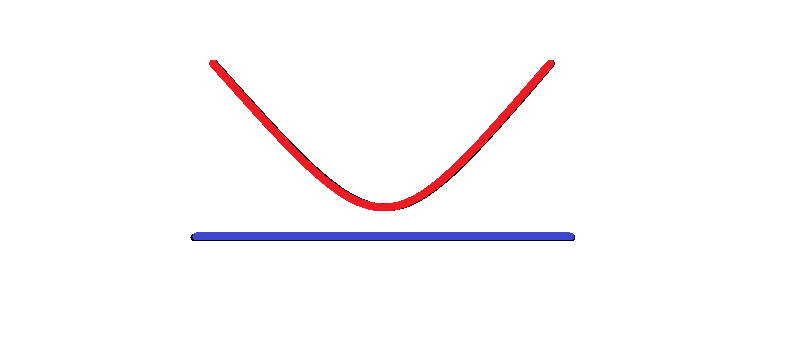 x軸と交わらない下に凸のグラフはどうなるかというと、x軸よりも完全に上に「プカプカと浮いた状態」になります。