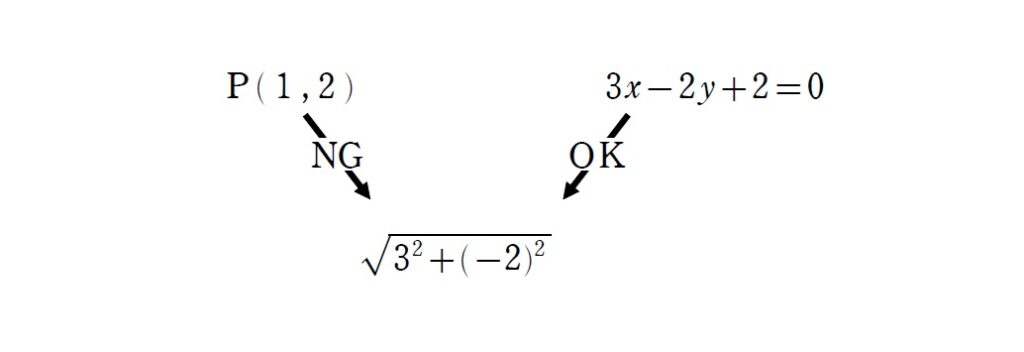 点の座標と混同しないように、「直線の係数を2乗して足してルート」とリズムで覚えましょう。