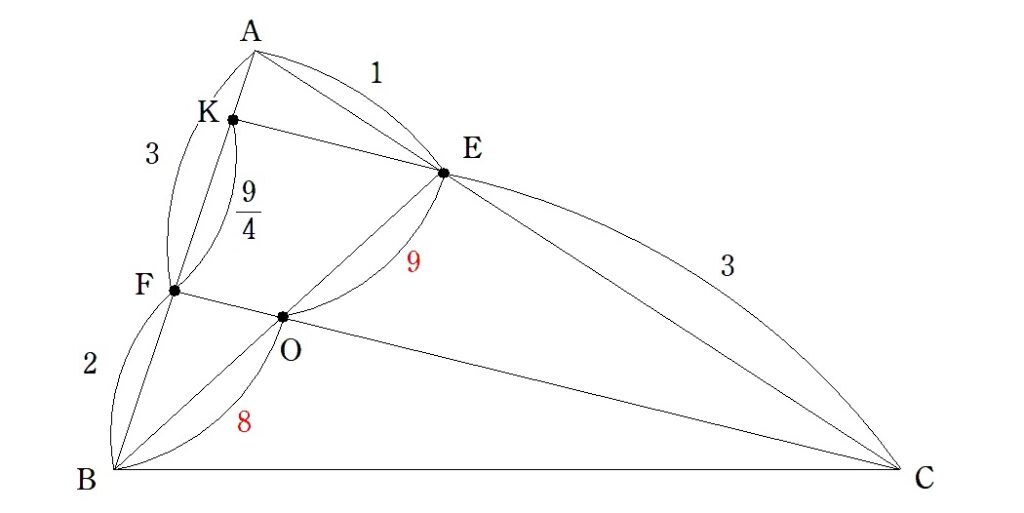 つまり、 $BO:OE = 8:9$ と一瞬で出せます。
