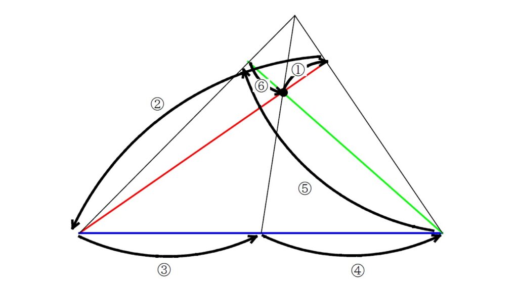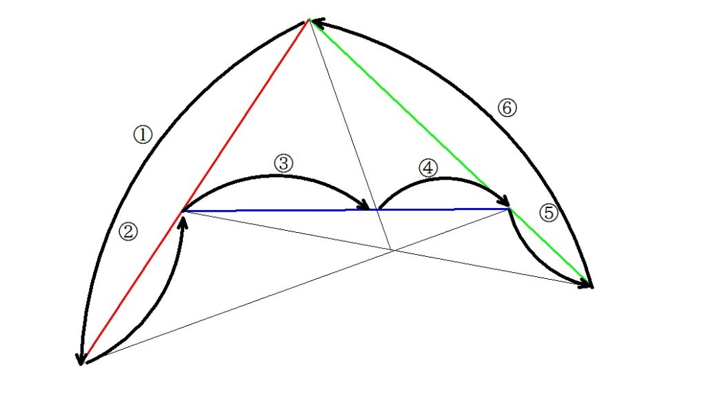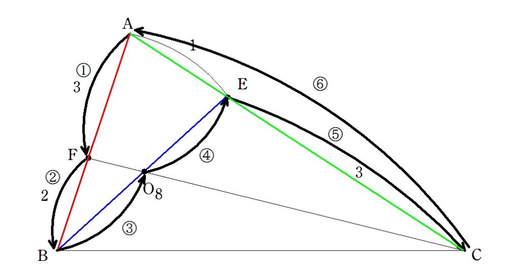 大事なのは 頂点 $\rightarrow$ 分点 $\rightarrow$ 頂点 という「一筆書き」だけです。